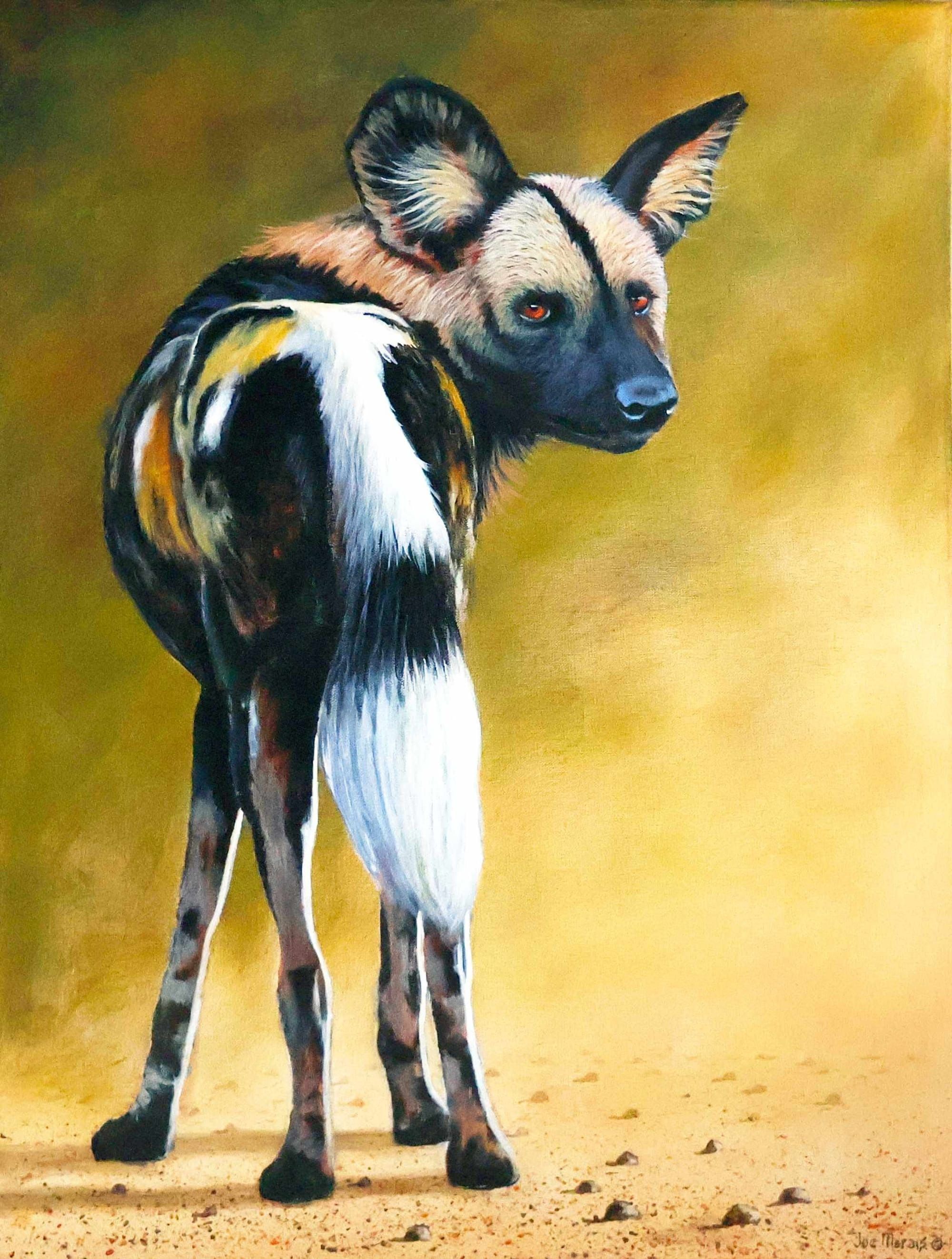 Original Acrylic Painting on Canvas Measurements: 80 x 60cm Block Mounted In my latest painting of an African Wild Dog, I’ve sought to capture the rare beauty and fierce intelligence of one of Africa’s most captivating predators. With its alert eyes, mottled coat, and lean muscular form, the wild dog stands as a symbol of both survival and unity — a creature that thrives through cooperation and instinct. Set against the soft tones of the African savanna, the painting reflects the delicate balance between vulnerability and strength in the wild. It’s a tribute to the spirit of Africa’s untamed wilderness — a reminder that even in a harsh and changing world, the call of the wild endures.
